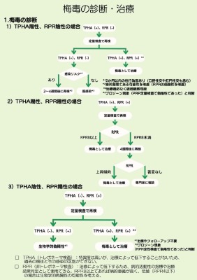 近年、梅毒患者が増加の一途をたどっており、術前検査で梅毒検査を行っている医療機関から、結果の解釈や説明に使用できる資材を作成してほしいとの要望があり、今回、佐賀大学医学部附属病院に依頼して、分かりやすいフローチャートを作成いたしました。また、結果の説明に使用できるチラシも準備いたしました。ダウンロード・印刷してご使用ください。