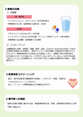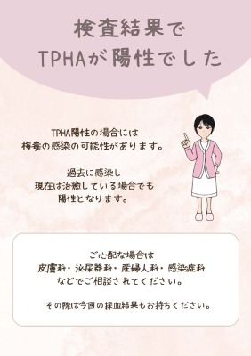 梅毒の説明に関しては、プライバシーに十分に配慮する必要があり、既感染がほとんどでもあり、慎重なご対応をお願いいたします。また、近年は手術器具のディスポ化や1例毎の滅菌処置が行われており、このような環境での手術による梅毒感染の可能性がないため、術前検査から梅毒検査を外している施設もあります。