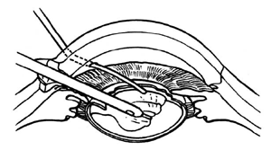 図3 水晶体嚢の中の濁った水晶体を超音波で吸い出します。