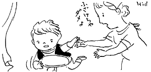 | 医師 | 日常生活に不自由がなさそうでも、視力測定をすると、視力が十分でないことがわかります。 また、視力がある程度よい場合には、目は常にピントを合わせようとして水晶体を厚くする努力をしなければなりません。そのため、疲れやすく頭が痛くなったり、読書やお絵かきなどの細かい作業が長つづきしない、集中力に欠けるなどの症状がでます。 ピント合わせをしようと努力すると同時に、内斜視(寄り目)になる場合もあります。 |