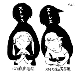 心身症とは、日常生活における心理的あるいは社会的なストレスが原因で、からだのどこかに症状がおきてくる病気です。例えば、ストレスにより心臓がドキドキして苦しくなる心臓神経症や、ストレス性の