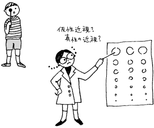 仮性近視とは近視になりかけの目のことで、この状態ではメガネをかけません。メガネをかけると本当の近視になる可能性があります。