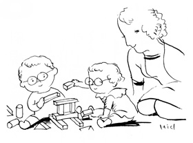 | 医師 | 両眼視とは、両目を使ってものを一つに見る働きのことです。両眼視も先にお話した視力と同じように、赤ちゃんがものを見る自然の訓練によりできあがっていきます。両眼視は生後一年位でできあがり、六歳位で完成するといわれていますが、生まれつき両眼視ができなかったり、その発達が途中でうまくいかないと斜視になります。 |