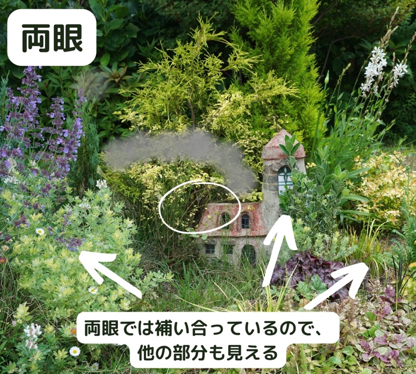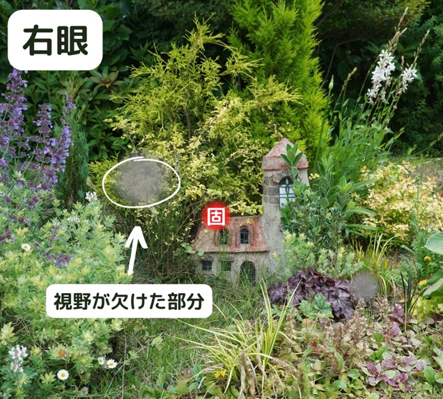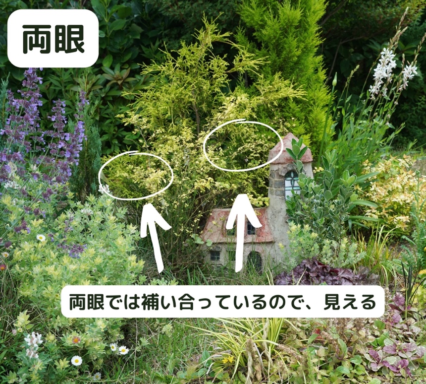 左右の写真を見て、それぞれどのあたりが見えていないのか、おわかりになりますでしょうか。それでは下の写真をご覧ください。