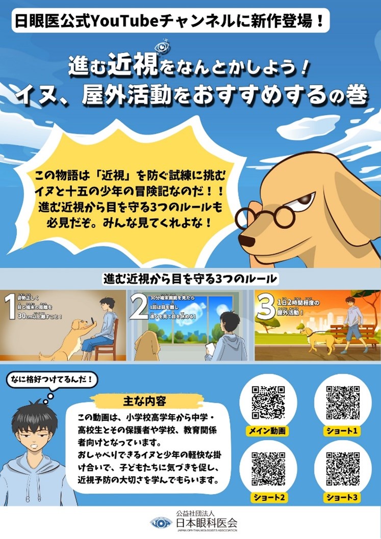 【近視予防の啓発動画「進む近視をなんとかしよう! イヌ、屋外活動をおすすめするの巻」】