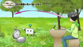 屋外学習を通じて、近視をなんとかしようと取り組む健人やデジたん!たち。それを支えるまさこ先生やデンコク先生。本動画では、近視の進行が発症リスクとされる緑内障や黄斑変性などの目の疾患について周知し、またインターネットから得る情報に加えて、「図書館」というワードを用いて、正確で偏りのない目の健康に関わる情報をつかまえて活かそうというバックサイドストーリーも加えています。児童生徒の多くが端末を日常的に使う一方、放課後は外出せず、動画視聴やゲームをする「おうち時間」の増加がコロナ禍以降みられます。この動画をもとに、端末の適正使用と、近視の進行予防のカギとなる屋外活動について、家族や友人と話し合っていただきたく思います。